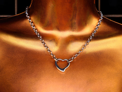 Necklace with heart lock charm and spike-like pendants on a bronze surface